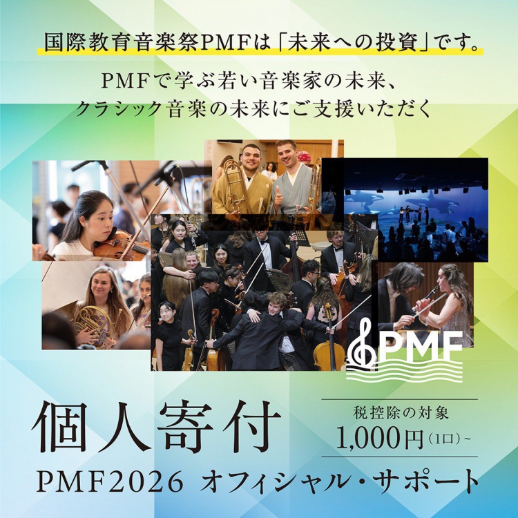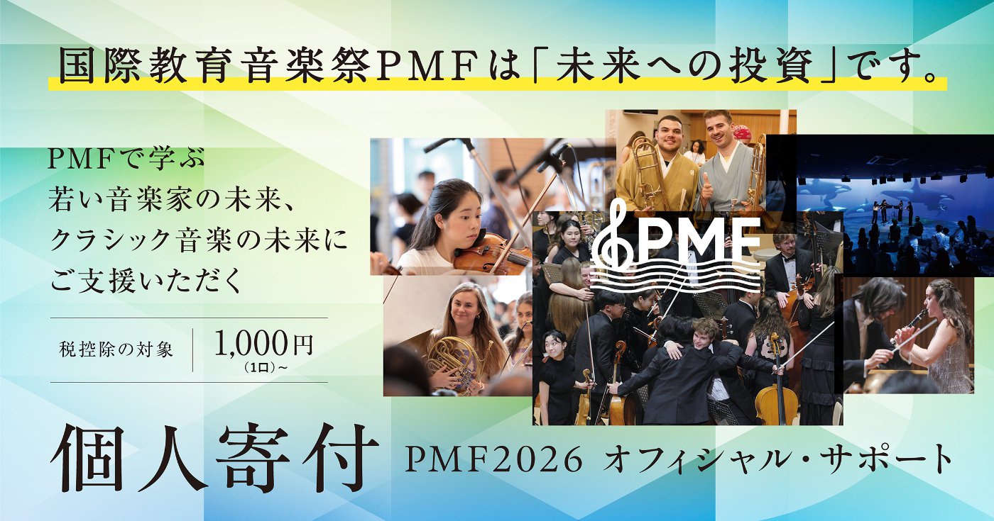 パシフィック・ミュージック・フェスティバル札幌(PMF)は未来の音楽シーンを担う若手音楽家が夏の札幌に集結し、音楽と平和を愛したレナード・バーンスタインの精神を受け継いで感動のステージを繰り広げる国際音楽祭です。